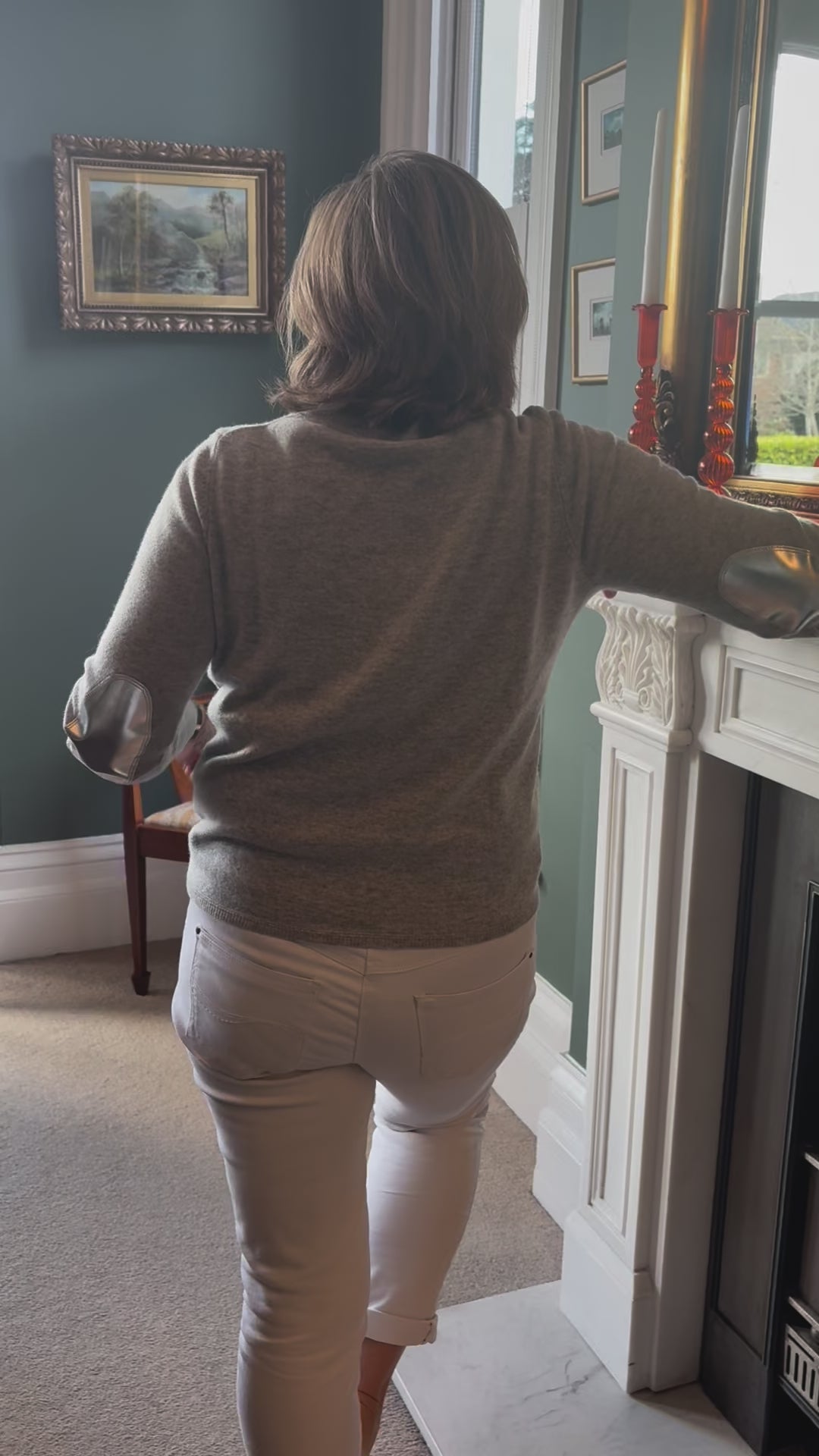 Indulge in pure luxury with our beloved boxy crew sweater, back in a soft, cloud-like grey and finished with gleaming silver faux leather elbow patches for a touch of understated elegance.