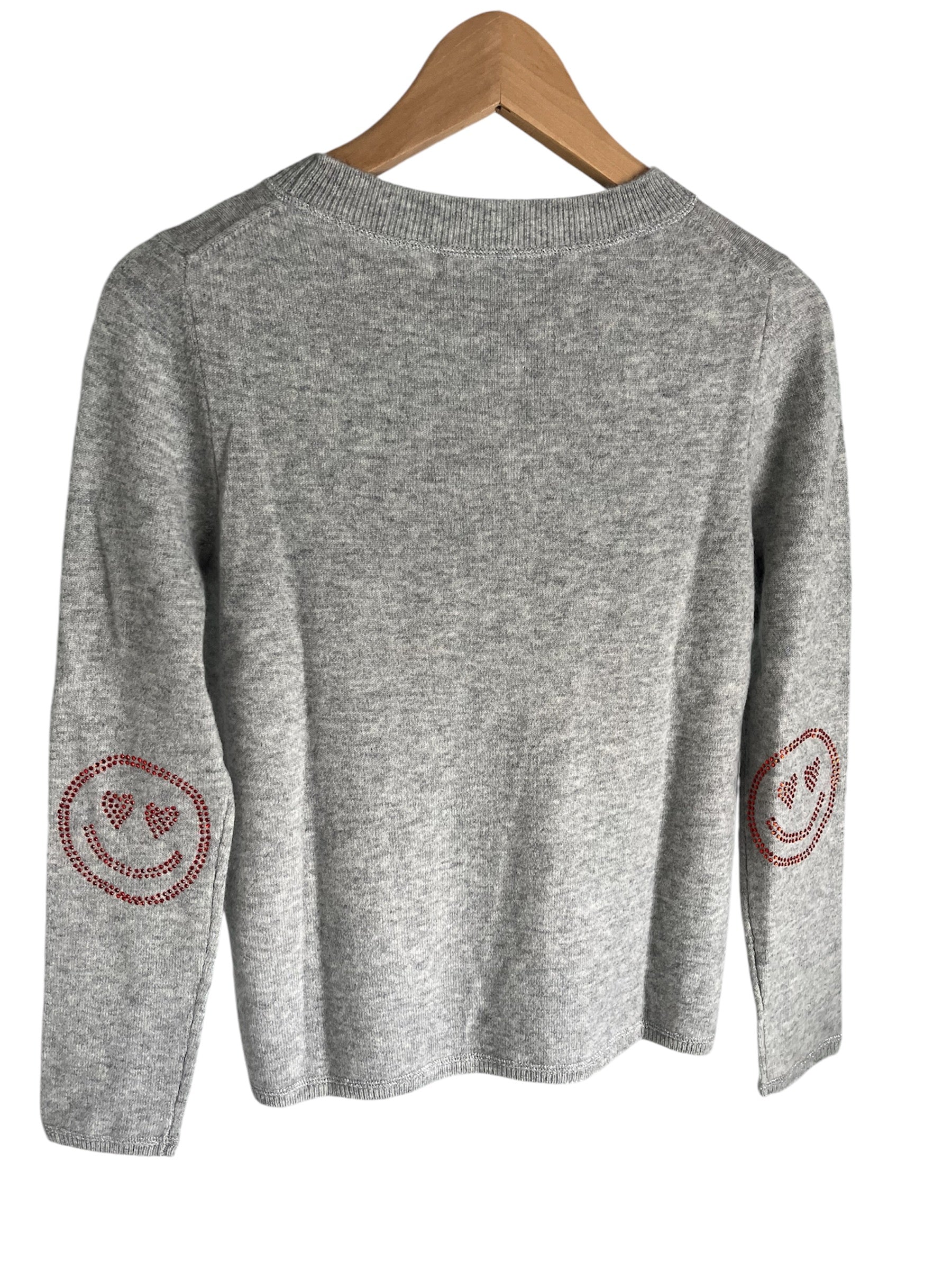 ONLY ONE LEFT - Grey boxy crew neck with orange diamante smiley face elbow patches
