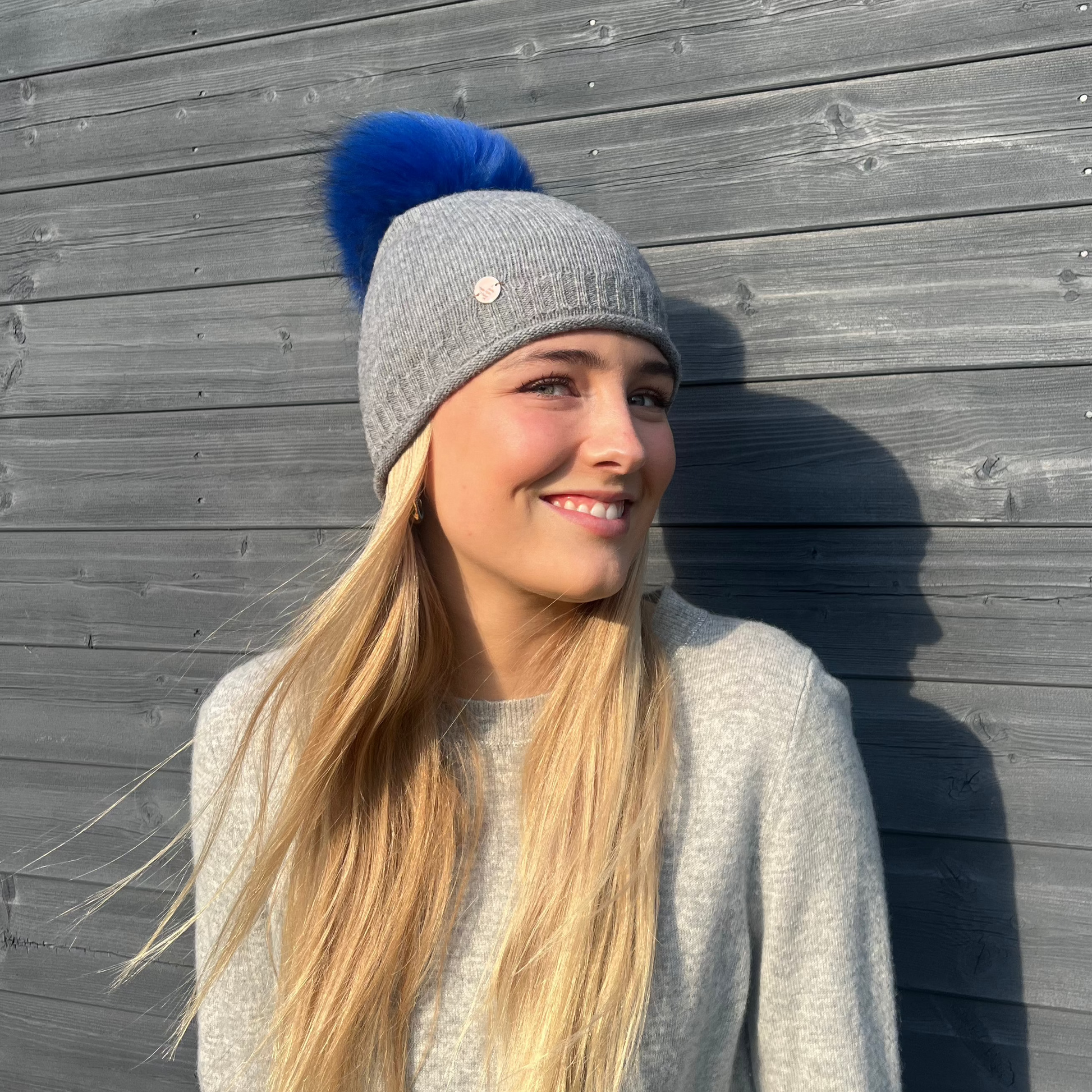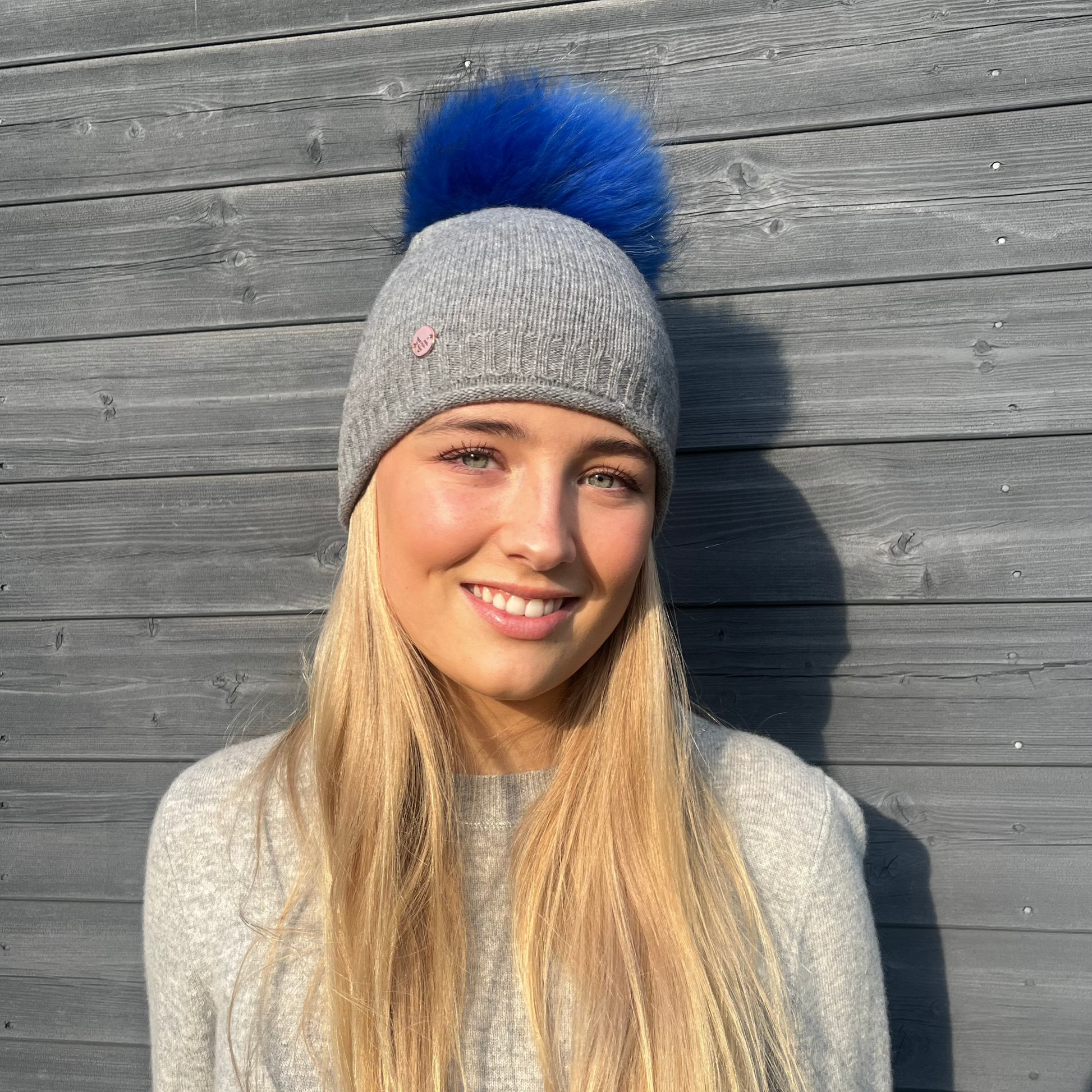 Crafted for ultimate comfort and warmth, this essential piece features a detachable sapphire fur pom giving a pop of colour. The press stud closure makes swapping poms a breeze, allowing you to express your unique style. This beanie is the perfect treat for yourself or a thoughtful gift for someone special.